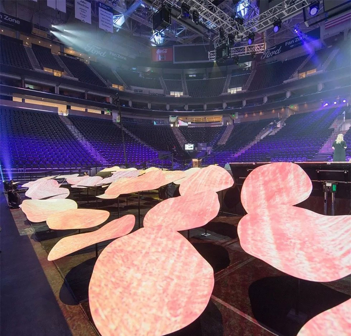 活动主题:当投影将画面投射到这些话版的表面时,地面和空中都被花瓣装饰着,营造了一个非常唯美而又震撼的舞台效果